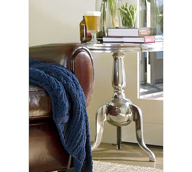 I've also been searching high and low for a table similar to this Pottery Barn Recycled Aluminum Side Table: